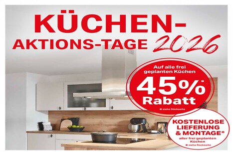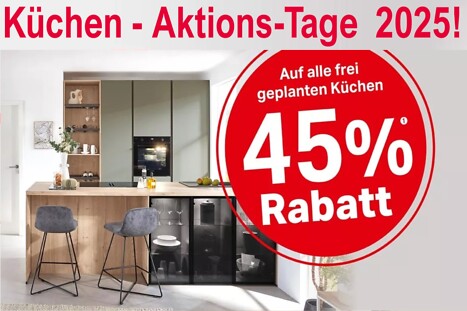 Auf alle frei geplanten Küchen 45%* Rabatt!