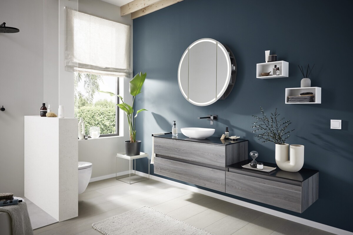 Eine große Auswahl an raffinierten Spiegelelementen, verschiedenartige Waschtische mit passenden Unterschränken sowie flexible Waschtischplatten & praktisches Zubehör kombiniert mit moderner LED-Technologie sorgen dafür, dass keine Wünsche offenbleiben.